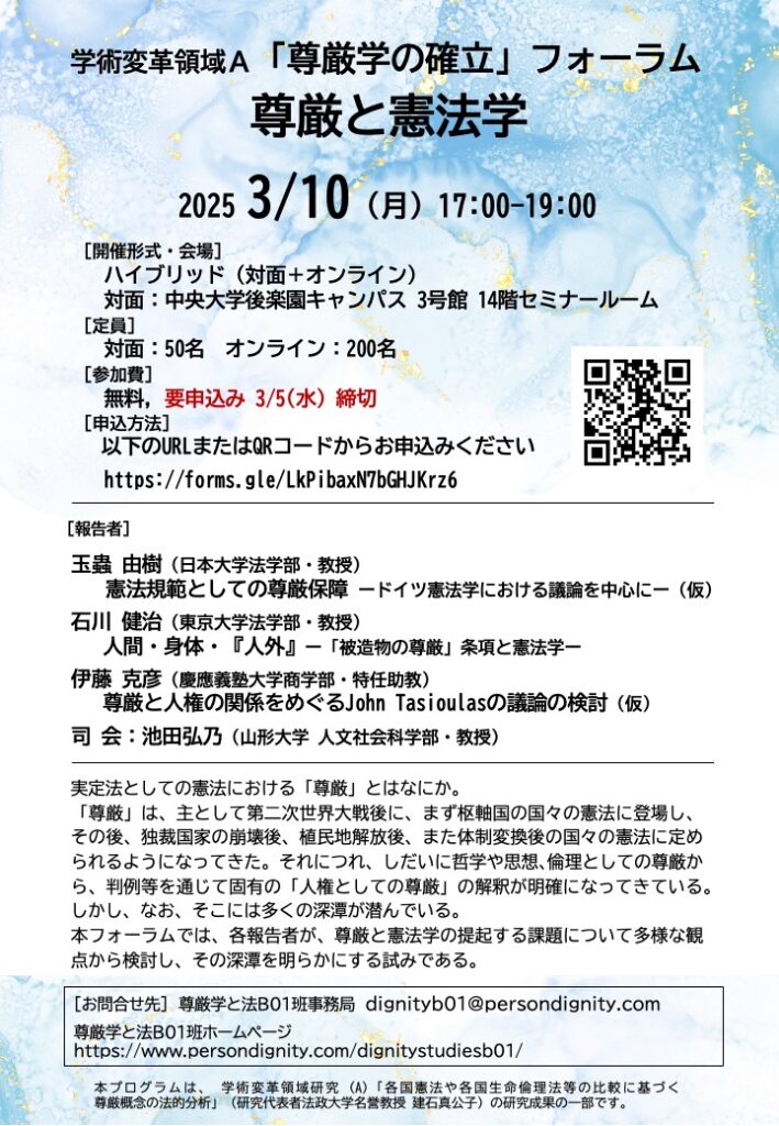尊厳と憲法学(2025/3/10)開催のお知らせ